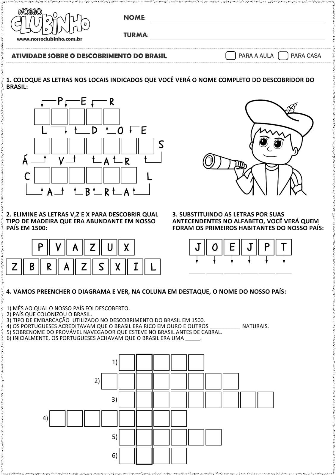 Atividades do Descobrimento do Brasil para Ensino Fundamental | Viver