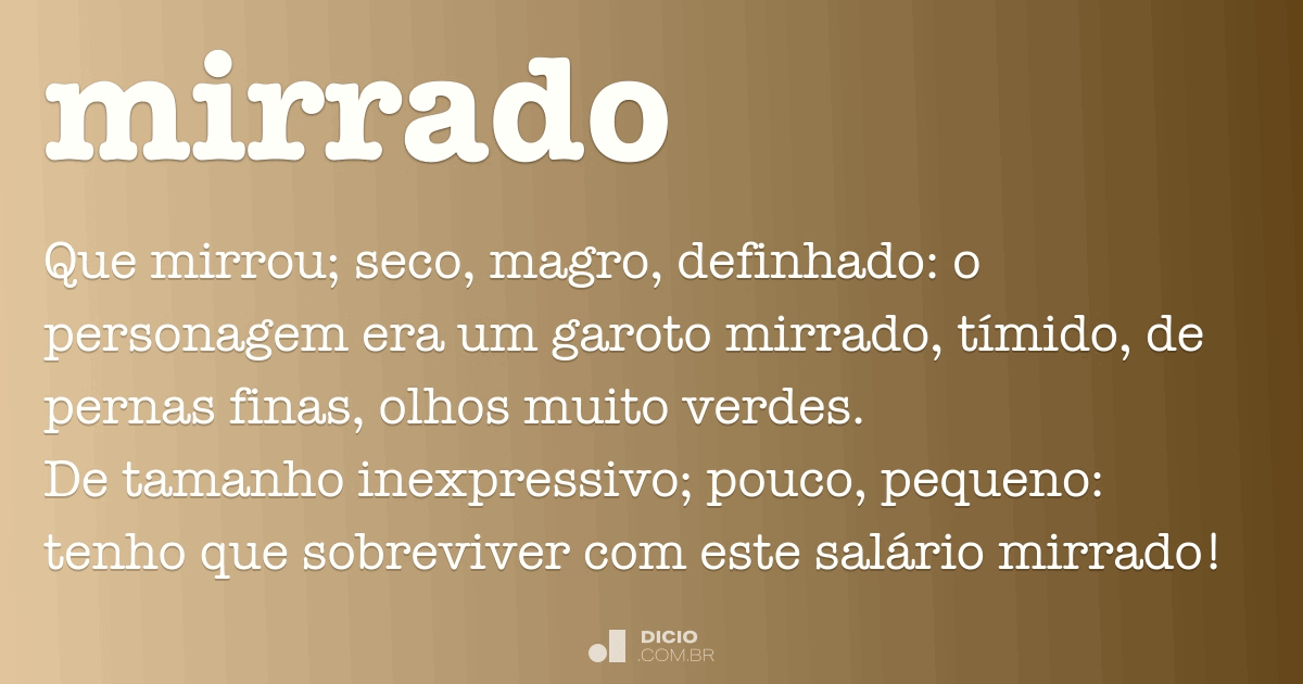 Definição ou significado de mirrada no dicionário infopédia da língua portuguesa Significado de mirrados no dicionário priberam da língua portuguesa. O que é mirrados. Significado e uso do termo.