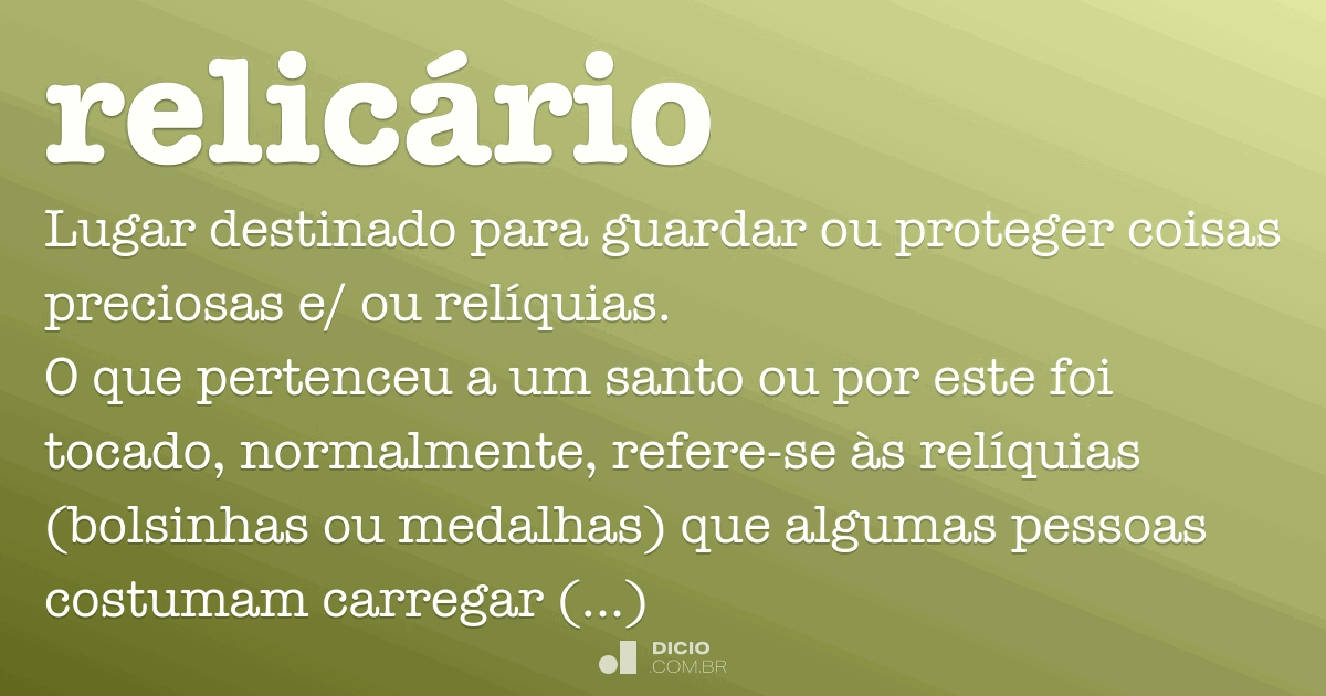 Também é uma caixa que serve para. O principal significado de um relicário é guardar relíquias sagradas, como ossos ou objetos relacionados a santos ou figuras. É a mensageira da saudade, é o relicário da prece, é a cristalização da mágoa. É imortal, porque deriva. Webrelicário é o sítio ou recipiente onde se guardam ou protegem as relíquias (objectos que são venerados).