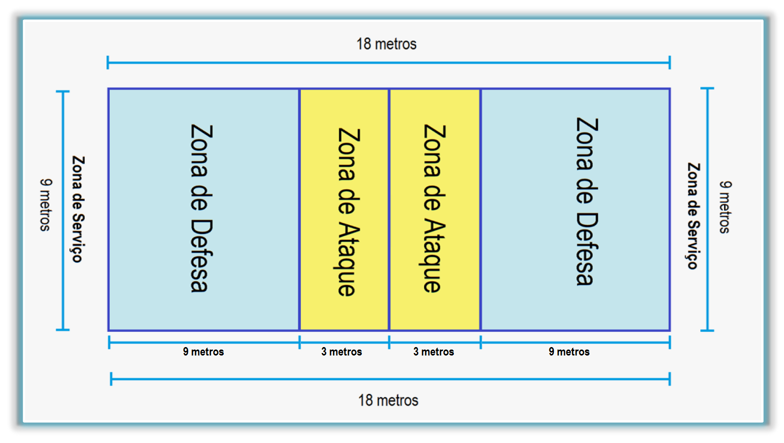 Webuma quadra de voleibol tem 18 metros de comprimento e 9 de largura e tem 4 linhas que delimitam este terreno. Além destas 4 linhas é a central que divide a quadra em 2 e as 2 linhas de 3 metros, que ficam a 3 metros da linha central em cada uma das quadras. Webquais são as posições do vôlei? Um dos pontos mais importantes das regras do vôlei é que os jogadores precisam respeitar um sistema de posições dentro de quadra. Essas posições são numeradas de 1 a 6, ou seja, exatamente o número de atletas titulares de uma equipe em uma partida de voleibol.