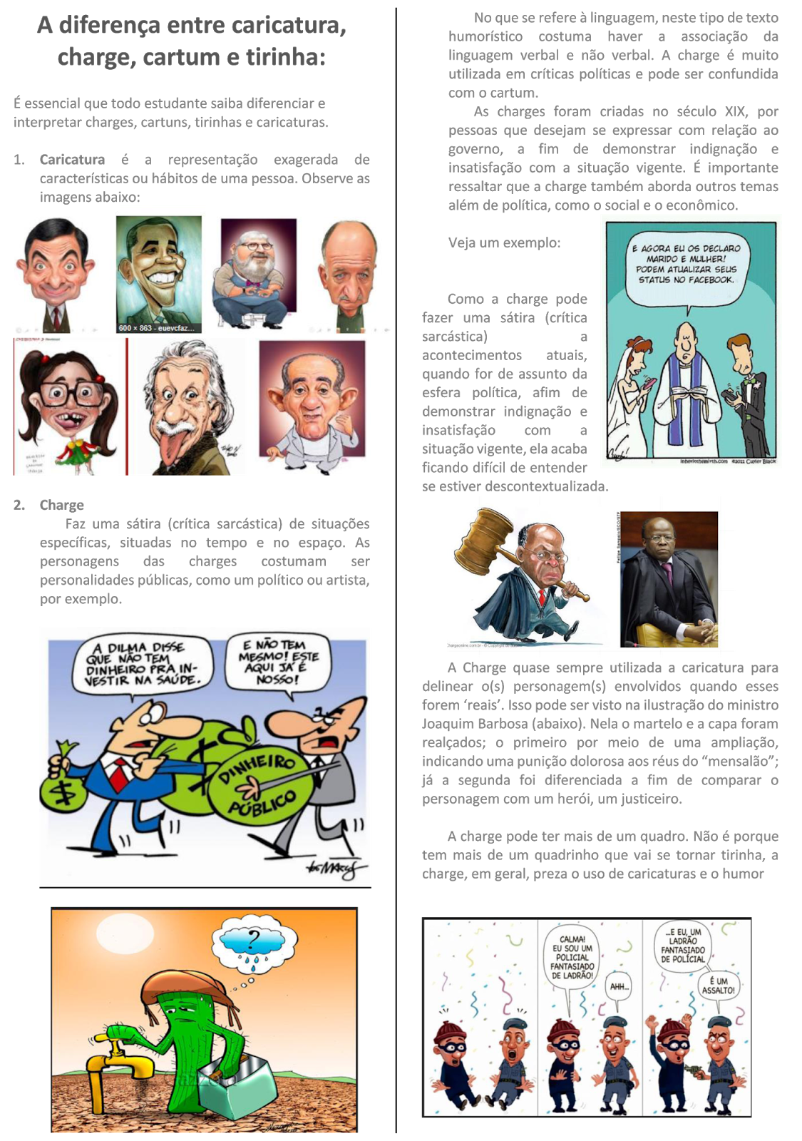 3ª) copiar, no caderno, a atividade sobre a matéria. Webo cartum veio depois da charge e é diferente. A palavra inglesa cartoon significa: Cartão, papelão duro, e deu origem ao termo cartunist, ou seja: Webcomo a charge, o cartum é apresentado em um quadro apenas. Um conjunto de cartuns formam uma tirinha, que tem introdução, desenvolvimento e. Assim aparecem nos dicionários. Todos se referem a desenhos jornalísticos de. Weba diferença básica é que a charge sempre trata de assuntos atuais, de modo que podemos dizer que seu conteúdo efêmero tem período de validade e muitas vezes não tem. Webmoçada, na aula de hoje, você vai aprender a ler e interpretar charges, cartuns, tiras e memes para, a partir desses gêneros, elaborar outras produções textuais.
