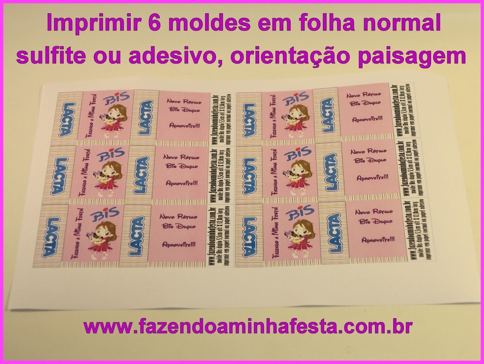 Medidas do Bis e do Batom de chocolate para Fazer Caixa ou rótulo
