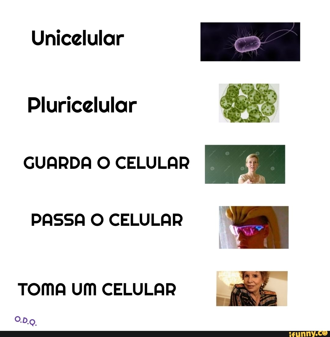 Já os organismos pluricelulares são assim como nós, ou seja, têm um montão de células. Webos organismos unicelulares são aqueles formados por uma única célula, que desempenha todas as funções celulares necessárias. Bactérias, protozoários e algumas.